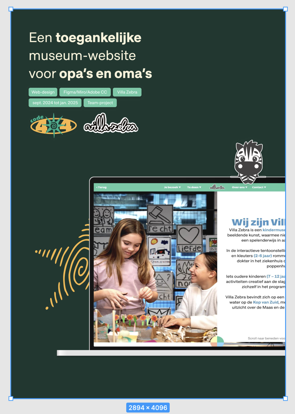 Met behulp van onderzoek en contact met de doelgroep, hebben we een onderliggend probleem gevonden. Veel ouderen bereiken Villa Zebra niet omdat ze te veel momenten tegenkomen waarop ze de site afsluiten. Zo zoeken ze vaak hulp, maar willen ze het liefst live-contact-opties en willen ze een op hen toegesneden site maar zich tegelijkertijd ook niet bewust worden van hun beperkingen. Dit is dus een hele doelgroep die Villa Zebra niet kan bereiken. Om deze doelgroep wel naar de voordeur van Villa Zebra te krijgen hebben we een ontwerpvraag opgesteld: “Hoe kunnen we een toegankelijke website voor opa’s en oma’s ontwerpen die is aangepast aan hun behoeften en hen een alternatief voor live-contact biedt, zonder dat ze zich bewust worden van hun beperking, zodat we deze nieuwe doelgroep ook kunnen aantrekken?”